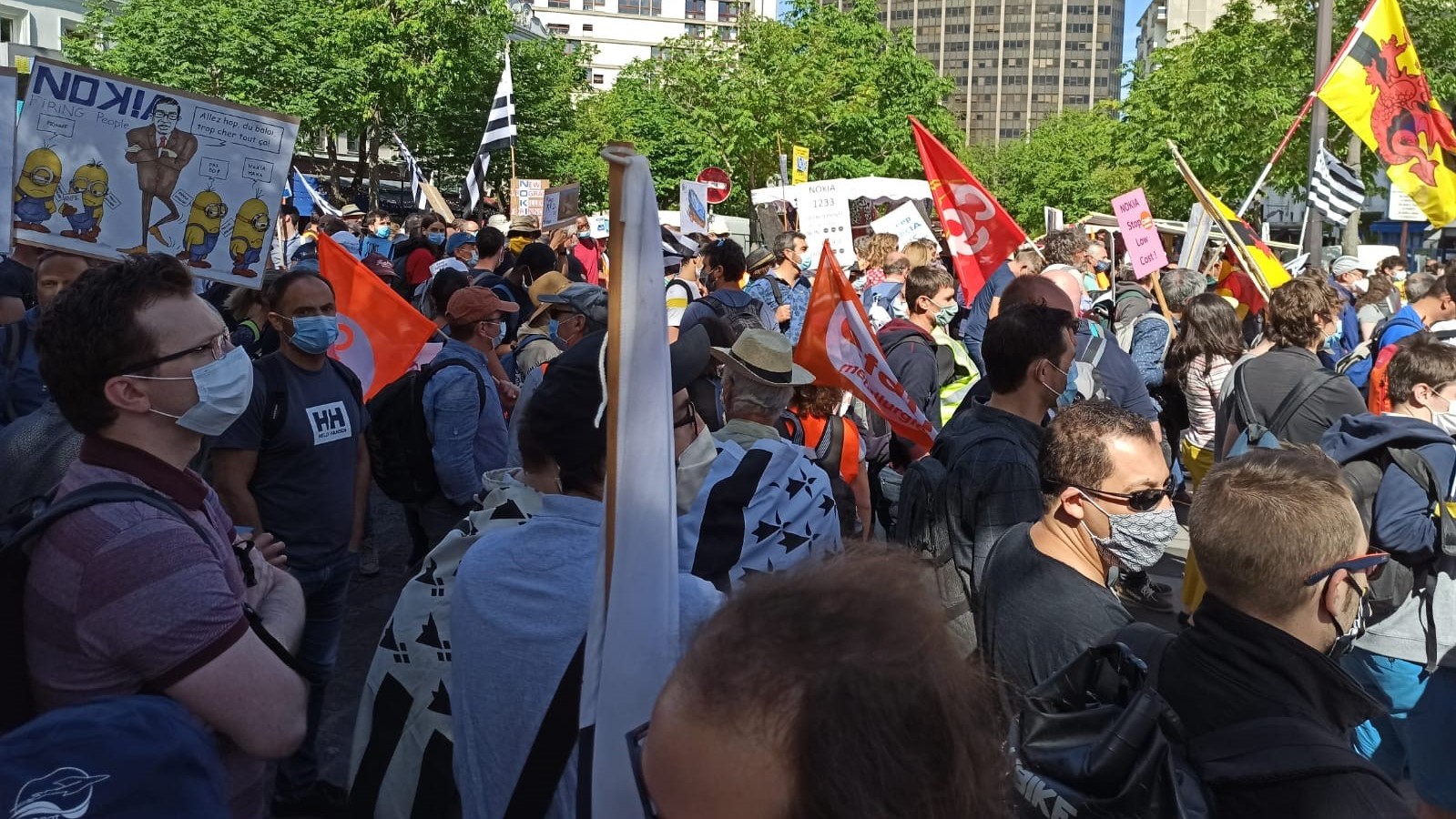 Nokia workers and their trade unions in France, have today staged a massive mobilisation to protest the company’s latest plans, that involve suppressing 1,233 jobs in France. It is the fourth restructuring plan since Nokia acquired Alcatel-Lucent in early 2016.